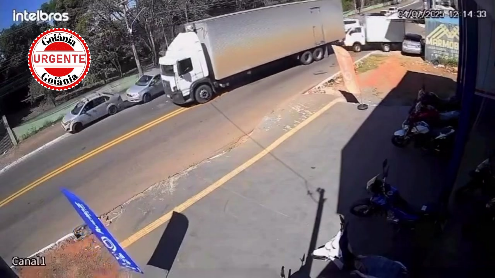 Uma câmera de segurança registrou, na tarde desta sexta-feira (4), o momento exato em que um caminhão perdeu os freios e provocou um acidente com múltiplos danos materiais na Avenida Mangalô, localizada no Setor Morada do Sol, região noroeste de Goiânia. As imagens, obtidas por veículos de imprensa locais e analisadas pela reportagem, mostram o veículo descendo a via em alta velocidade até colidir violentamente contra pelo menos três carros estacionados. A entrada de uma oficina mecânica foi completamente destruída.