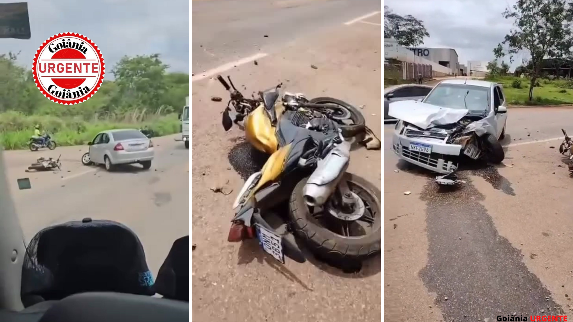 Colisão grave entre carro e motocicleta paralisa tráfego na GO-462, na região norte de Goiânia