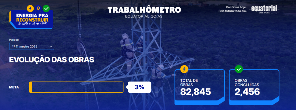 Tags: #EquatorialEnergia #EnergiaPraReconstruir #Goiás #InfraestruturaElétrica #Modernização #DistribuiçãoDeEnergia #Transparência #Trabalhômetro #Sustentabilidade #EnergiaSegura #Investimento #ManutençãoElétrica #EquatorialGoiás