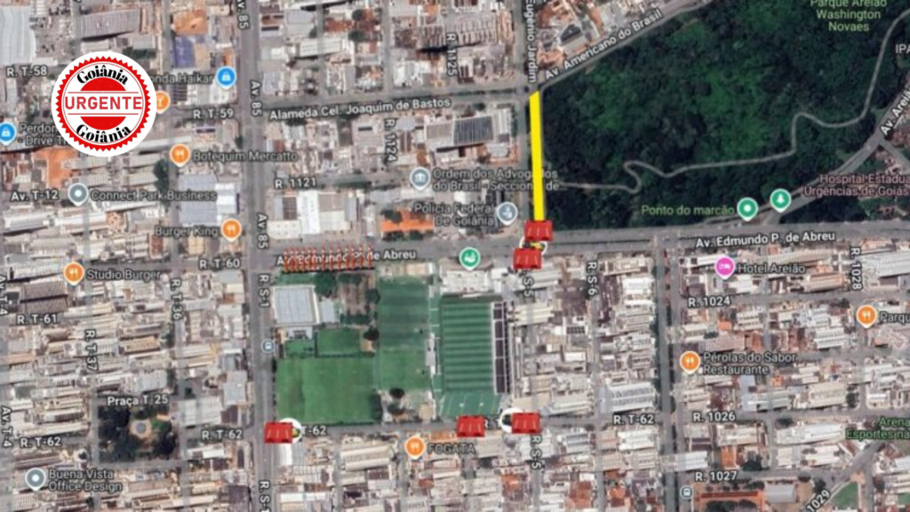 Trechos da Rua T-62 nos cruzamentos com as ruas S-5, S-4 e S-1 terão acesso limitado apenas a moradores e veículos autorizados. A medida busca reduzir congestionamentos e evitar conflitos entre o fluxo de pedestres e veículos nos momentos de maior concentração de torcedores.