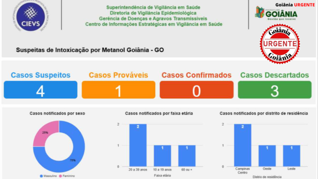 A Prefeitura de Goiânia, por meio da Secretaria Municipal de Saúde (SMS), colocou em operação um painel digital de monitoramento destinado ao rastreamento de casos suspeitos de intoxicação por metanol na capital. O sistema foi desenvolvido para centralizar e atualizar em tempo real as notificações enviadas ao Centro de Informações Estratégicas em Vigilância em Saúde (CIEVS), permitindo respostas mais rápidas das equipes técnicas diante de possíveis emergências toxicológicas.
