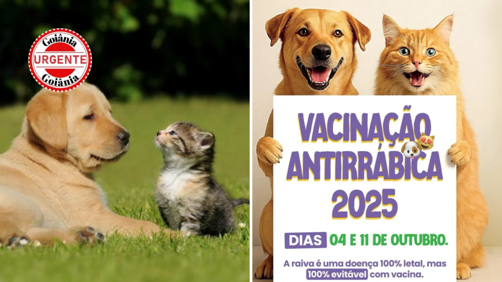 A Prefeitura de Goiânia, por meio da Secretaria Municipal de Saúde (SMS), inicia nos dias 4 e 11 de outubro a Campanha de Vacinação Antirrábica 2025, oferecendo gratuitamente 180 mil doses para cães e gatos em toda a capital. O objetivo é alcançar pelo menos 80% da população animal estimada, formada por cerca de 215 mil cães e 30 mil gatos.