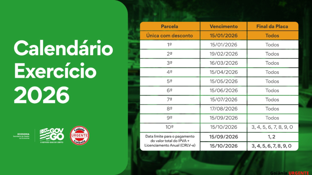 O Governo de Goiás confirmou a manutenção do calendário de pagamento do IPVA 2026, preservando o formato adotado nos últimos exercícios e reforçando uma política de previsibilidade fiscal ao contribuinte. O cronograma, divulgado pela Secretaria da Economia, estabelece vencimentos concentrados sempre no dia 15 de cada mês, com adequações automáticas quando a data recair em finais de semana ou feriados.