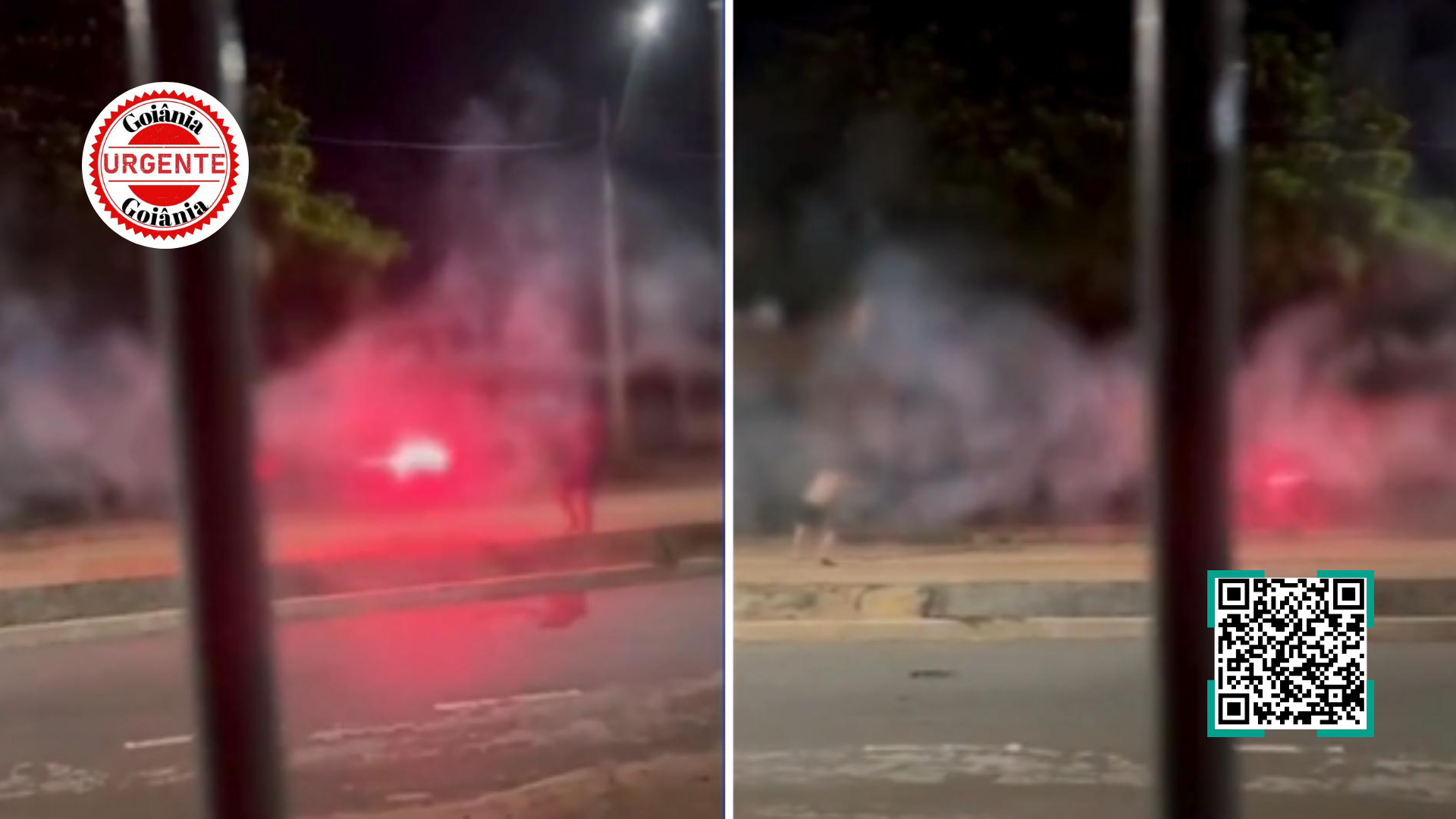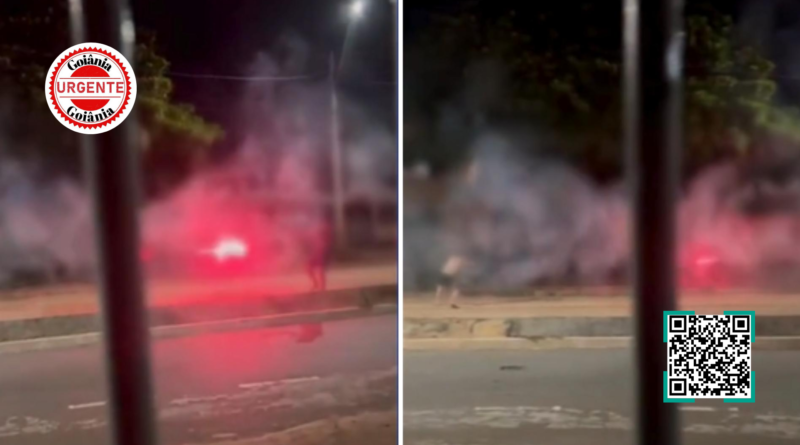 Uma cena de alto risco envolvendo adolescentes utilizando fogos de artifício como projéteis foi registrada na madrugada deste sábado (4), na Avenida Horácio Costa e Silva, no setor Jardim Balneário Meia Ponte, em Goiânia. As imagens, gravadas por um morador, mostram dois jovens posicionados frente a frente disparando foguetes diretamente um contra o outro, em dinâmica semelhante à chamada “guerra de fogos”.