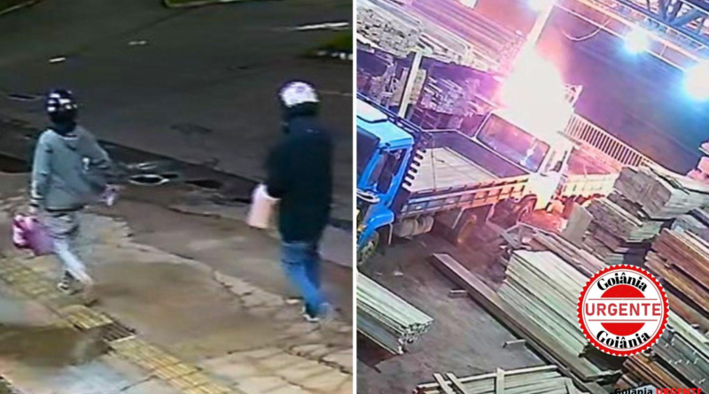 Imagens de videomonitoramento registraram a ação de dois homens que incendiaram uma madeireira durante a madrugada em Trindade, na Região Metropolitana de Goiânia. O ataque ocorreu dentro do mesmo estabelecimento onde, dias antes, um motociclista perdeu a vida em um acidente envolvendo carga de madeira movimentada por empilhadeira, o que amplia a complexidade investigativa do caso.