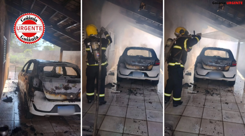 Fogo atingiu um automóvel e parte da estrutura de uma residência no Setor Boa Vista; ação rápida dos bombeiros evitou que as chamas se espalhassem para outros cômodos e imóveis vizinhos.