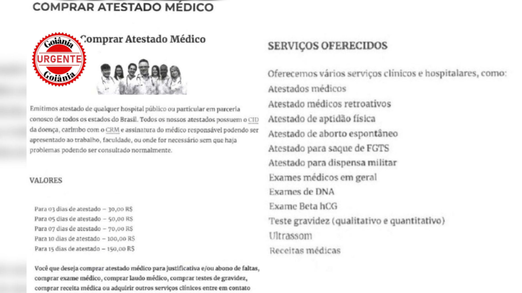 Além da falsificação de atestados, a comercialização de exames médicos com resultados previamente definidos chama atenção das autoridades pela gravidade potencial. Esse tipo de prática, segundo especialistas, não apenas compromete a fé pública, mas também representa risco direto à saúde coletiva, ao permitir que decisões clínicas ou administrativas sejam tomadas com base em informações fraudulentas.