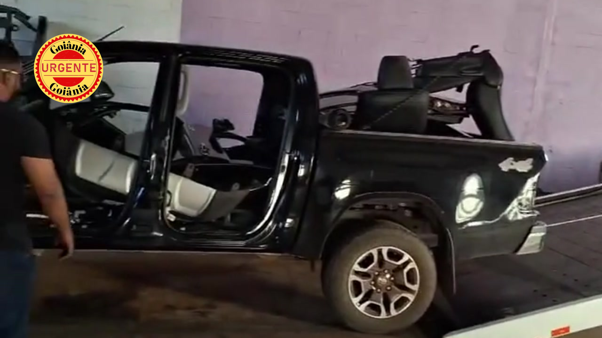 Ao chegarem ao local, os policiais perceberam a fuga do principal suspeito, que abandonou o veículo que dirigia e escapou ao pular o muro dos fundos da propriedade. Embora não tenha sido capturado, a ação revelou um esquema bem organizado, com pelo menos seis caminhonetes parcialmente desmontadas dentro do galpão. Entre elas, havia uma Toyota Hilux preta, que ostentava uma placa do estado de Minas Gerais, indicando a origem do veículo roubado.