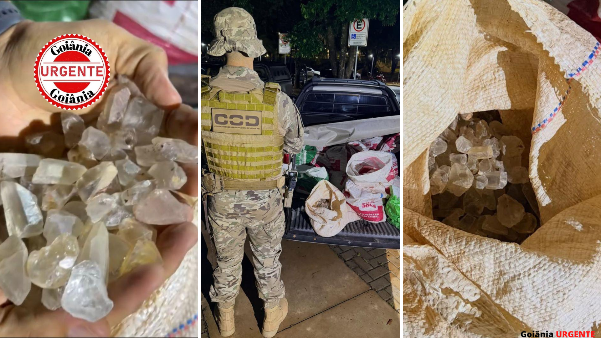 Uma operação do Comando de Operações de Divisas (COD) da Polícia Militar de Goiás resultou na apreensão de 460 quilos de cristais de quartzo extraídos ilegalmente e avaliados em aproximadamente R$ 135 mil. O material foi interceptado no município de Cristalina, região estratégica pela proximidade ao Distrito Federal e rotas usadas para o escoamento de cargas irregulares. O suspeito responsável pelo transporte, cujo nome não foi divulgado, foi detido em flagrante.
